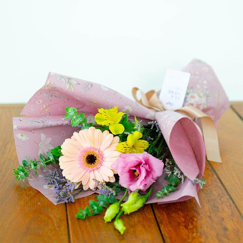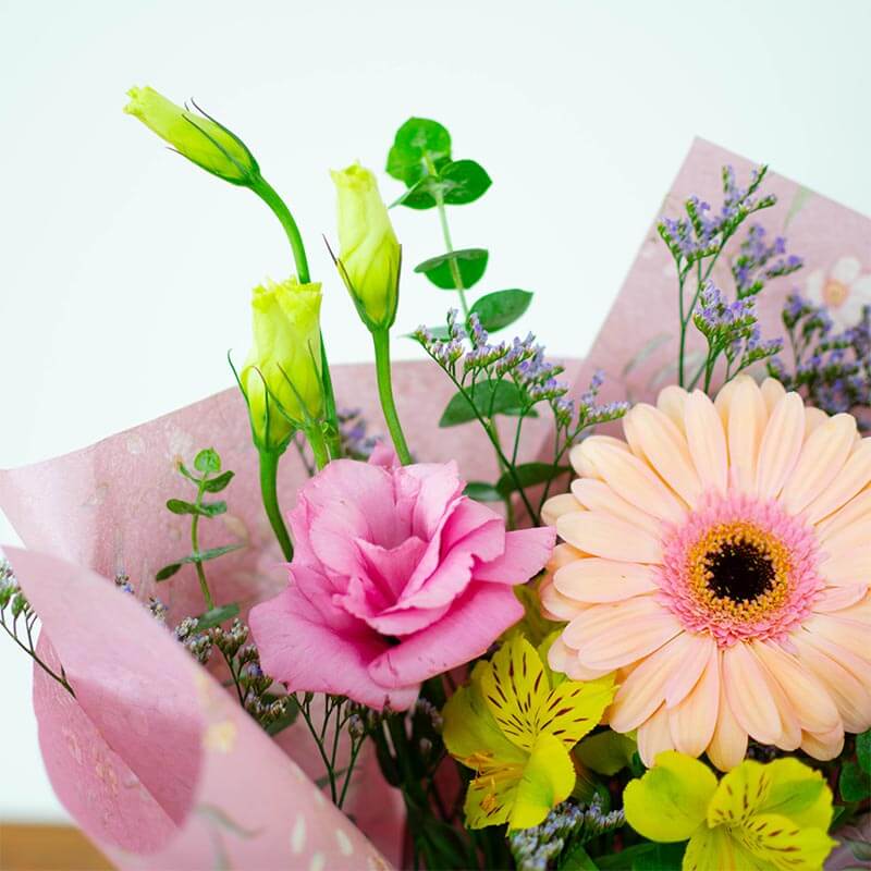 3 hastes de flores mistas como gérberas, rosas, astromélias e margaridas